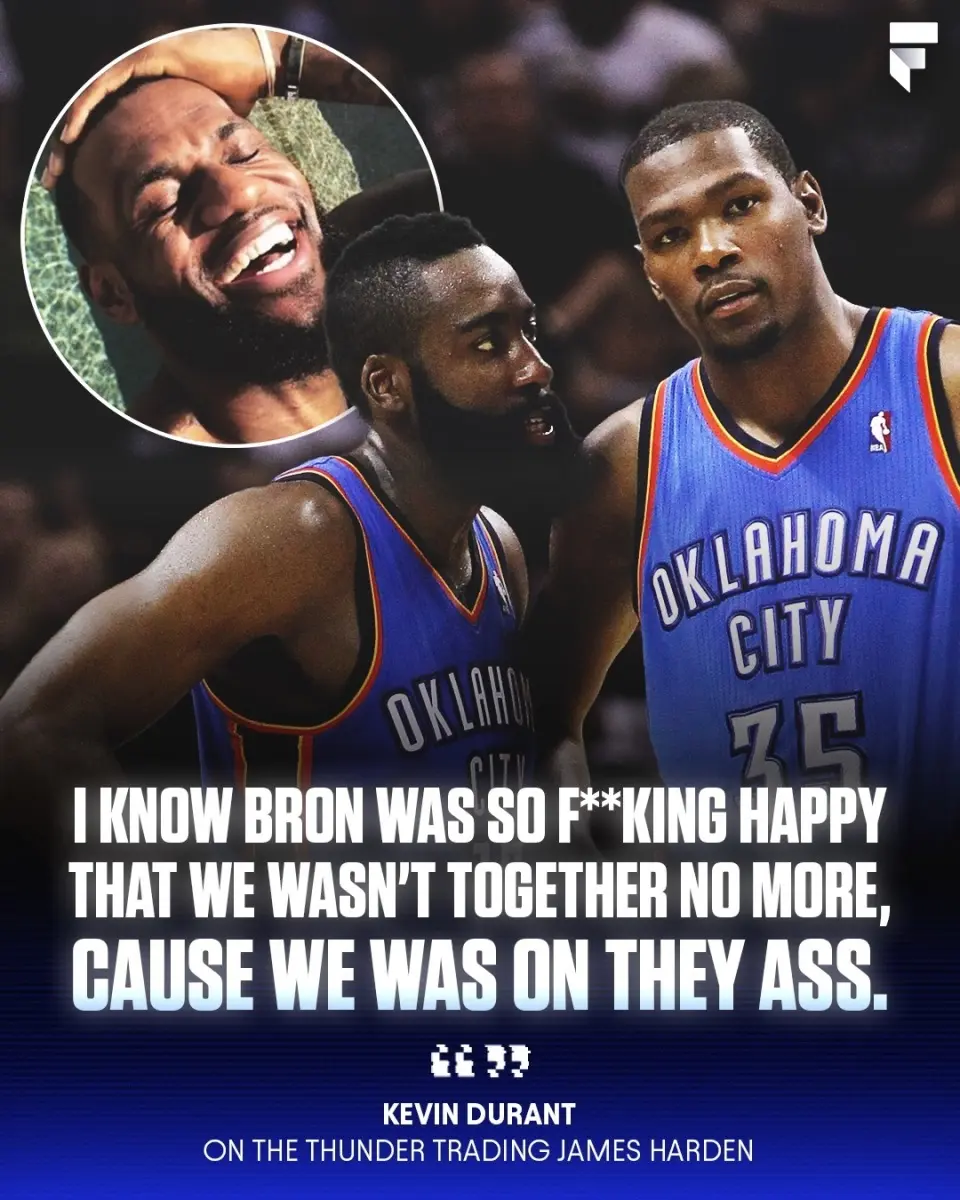 杜兰特哈登回忆雷霆三少散伙!哈登直言被气死 杜兰特称詹姆斯最高兴